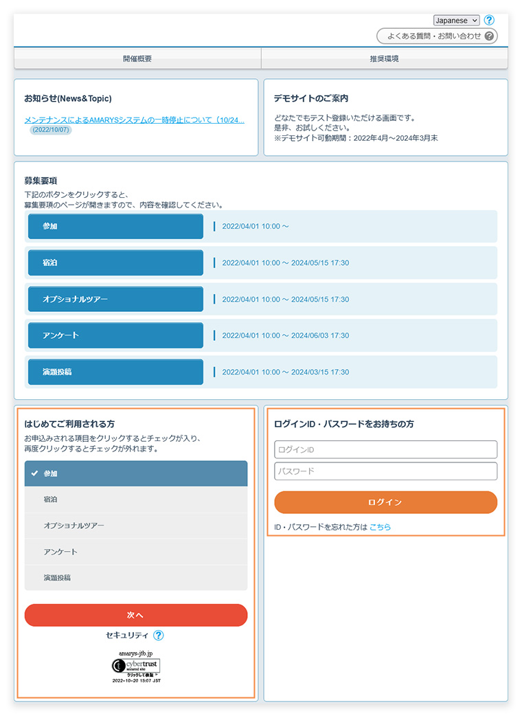 申込みTOPページ