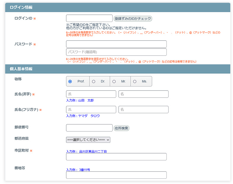 個人情報登録