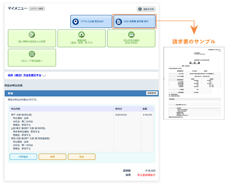 申込者の「マイページ」