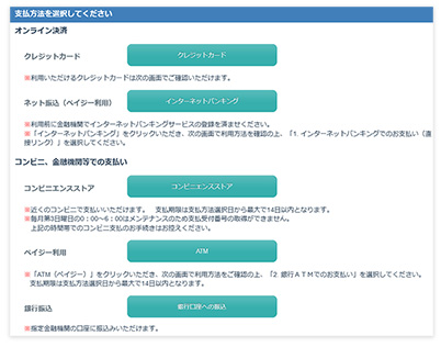 クレジット、コンビニ、ペイジー、銀行振込が可能です。